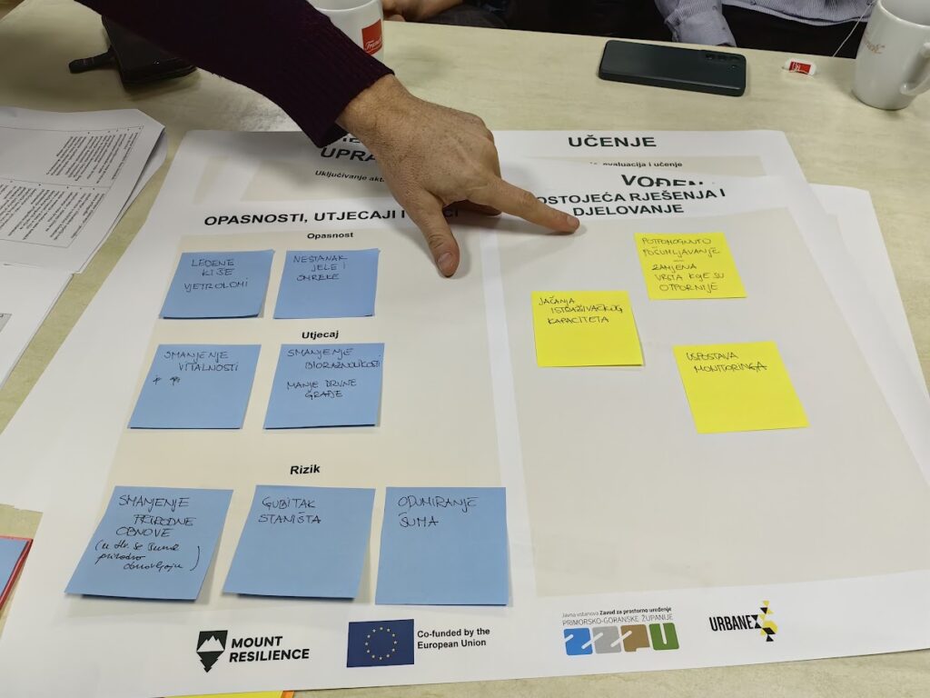 The workshop was jointly organised by the Public Institution Spatial Planning Institute of the Primorje-Gorski Kotar County and Urbanex Ltd., both MountResilience project partners, with the participation of representatives of relevant local and regional institutions, as well as various stakeholders from the Gorski Kotar civil sector. The workshop is the first in a series of four events aimed at bringing together key stakeholders who will contribute with their suggestions and experiences to the development of a replication plan for the Gorski Kotar region.