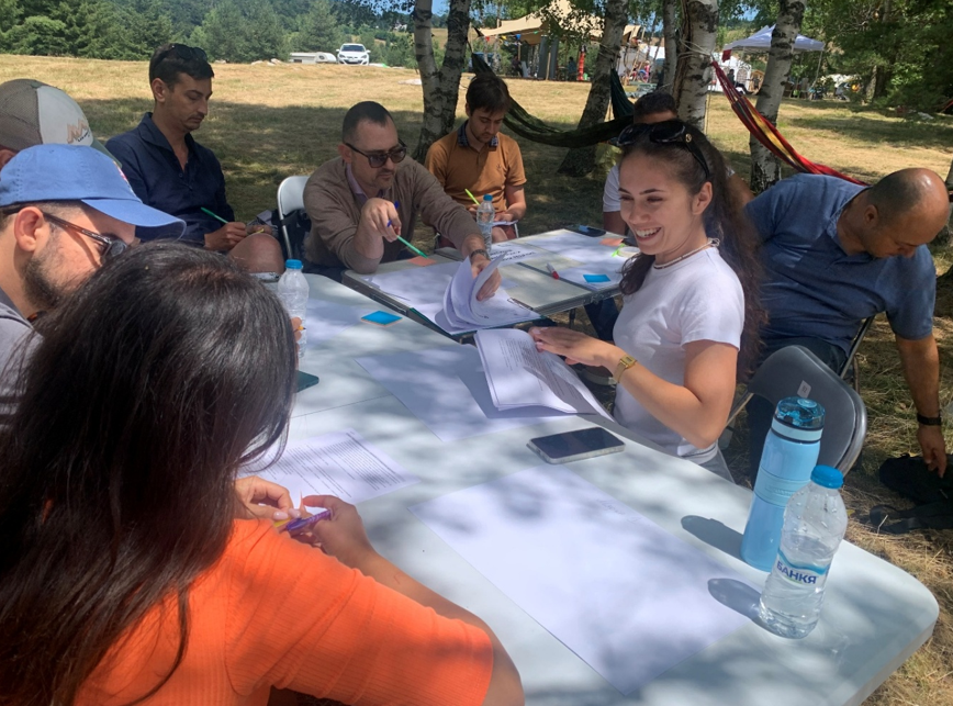 On the first day of the ecological festival Uzana Polyana Fest, an interactive discussion was held whose format provokes the generation of ideas and proposals, directed to finalising and enriching the Gabrovo’s GI strategy. The event is part of the activities by the European project MountResilience by the program “Horizon Europe”, in which Gabrovo is a pilot city.